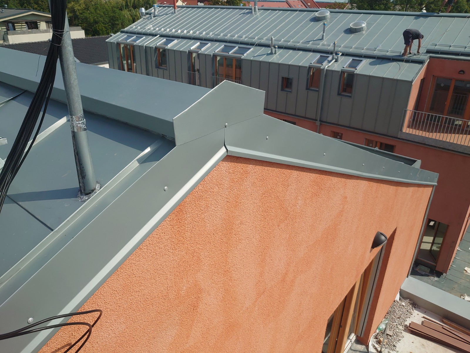 Na Návsi – konstrukce krovu, nadkrokevní izolace PIR, krytina falcovaná TiZn