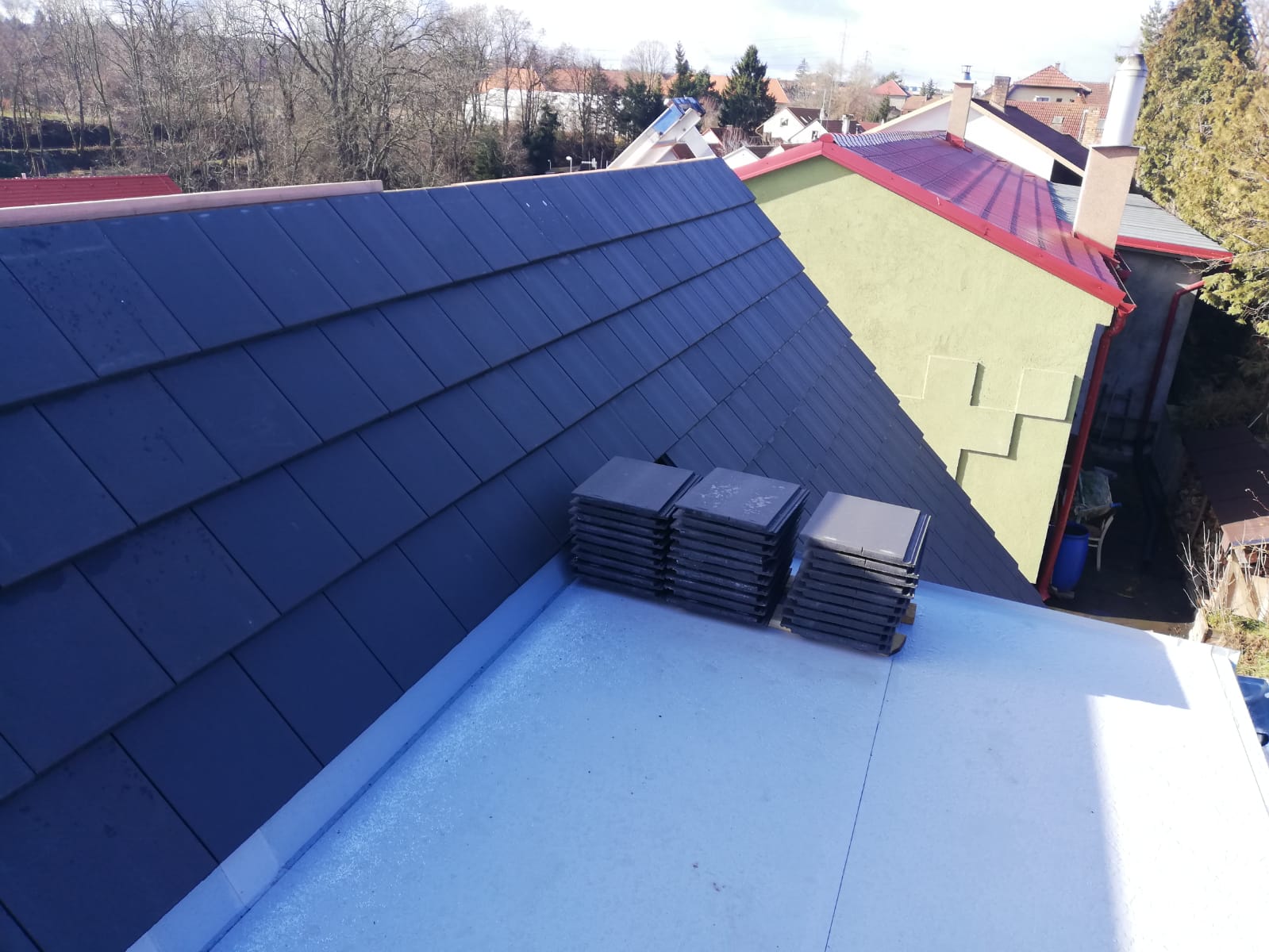 Nebřenice – krov, nakrokevní izolace PIR, volská oka, Cu, bobrovka
